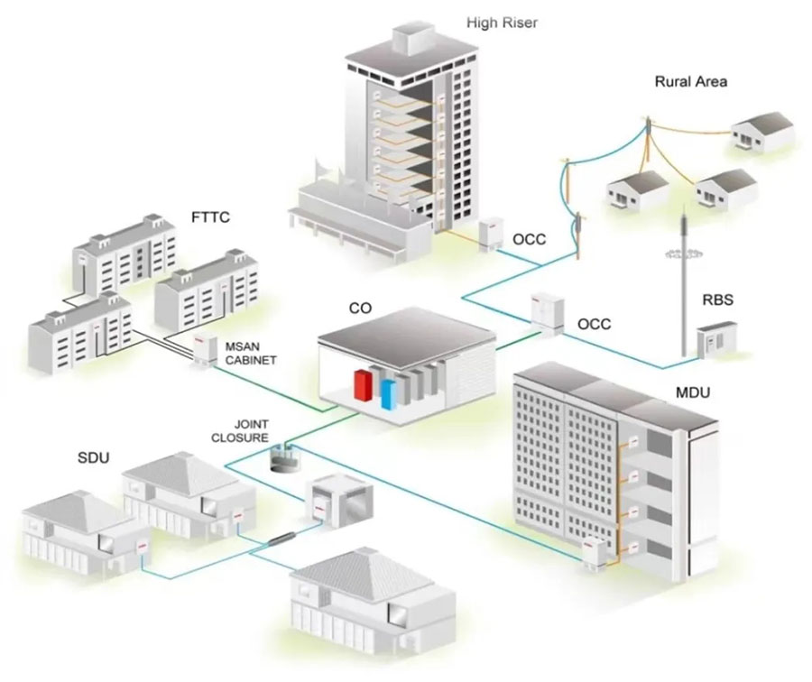 在通信网络领域,ng娱乐公司制造通过预连接ODN产品的技术方案完善及市场推广方面投入力量,发挥预连接ODN产品可靠性高、便利的级联部署方式、节省光缆成本、数字化管理的优点,推动在乡镇农村市场的试点与推广,加快推进5G网络向各乡镇、行政村延伸,巩固拓展脱贫攻坚成果和乡村振兴战略,满足农村居民便捷信息通信、直播带货、农业综合应用需求。